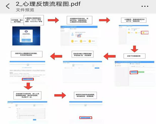 学院依托微信公众号、微信工作群、腾讯会议等平台,通过分享心理健康小故事、推送心理健康课程、开展心理云班会等方式向学生宣传心理健康知识和心理保健技巧,加大心理健康教育与宣传力度,帮助学生更好的掌握心理健康知识和技能,从而增强全体学生心理困扰应对能力;通过指导学生使用学校心理中心提供的线上、线下心理咨询预约方式,增强学生关注自身心理健康的意识,积极引导学生树立自助、互助、求助的意识,帮助学生学会积极主动解决困扰学习和生活的心理问题,培养阳光心态,理性面对挫折和困难。