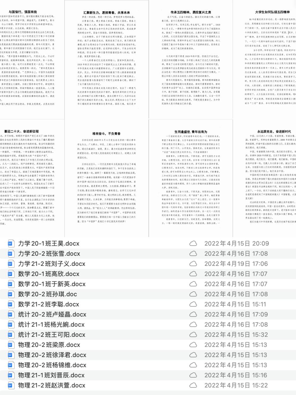 学院组织团员青年学习了《中国共青团史稿》《社会变革中的共青团》《党领导中国青年运动的光辉历程》等系列丛书,引导广大青年学生体悟党领导青年运动的光辉历程,坚定理想信念,勇担时代使命。主题团日活动包括组织全院学生集中开展学习座谈、团干部讲团课、故事分享、征文比赛、团团接力唱百年等形式多样的活动。实践建功活动包括通过发挥青年突击队、青年志愿者等“青”字号品牌项目功能,组织引导全院团员青年参与抗击疫情的志愿服务活动,如组织核酸检测、检查佩戴口罩、公寓消毒、清扫公共区域等。学院公众号“江畔理学之音”上开设学习团史等系列专题专栏,全面展现青年团员们的学习成效,以学生喜闻乐见的方式开展活动极大的提高了他们的兴趣和创作热情,营造了浓厚的氛围,进一步提升了他们的爱国情怀。