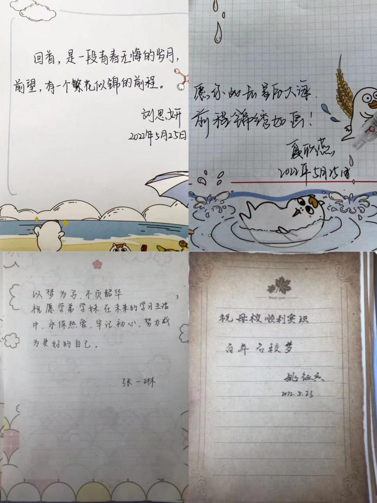 为营造温馨和谐、积极向上的毕业季氛围,切实增强毕业生爱校荣校之情,5月25日-5月30日,环化学院举办了“不负青春好韶华,云端寄语暖人心”毕业季送祝福活动。同学们在一张张信纸上写下了对母校的不舍和祝福的话语,表达了对母校和师生的深情厚谊以及对未来的展望与期盼。