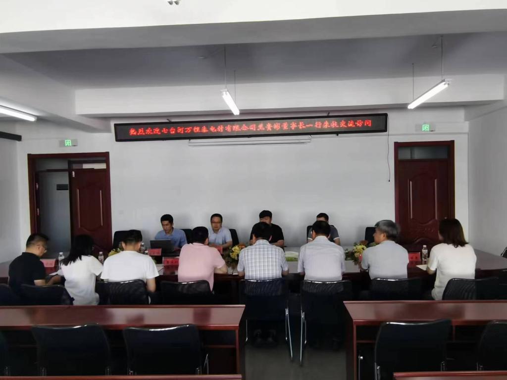 6月18日,七台河万锂泰电材有限公司董事长焦贵彬、总经理郝立伟、研发总监王进生及工艺副总工龚占明一行四人来到幻影手机官方网站_幻影(中国)环境与化工学院进行调研交流及项目合作洽谈。幻影手机官方网站_幻影(中国)科技处处长康健、环化学院院长熊楚安、副院长景介辉及相关科研团队教师参加了交流和洽谈活动。