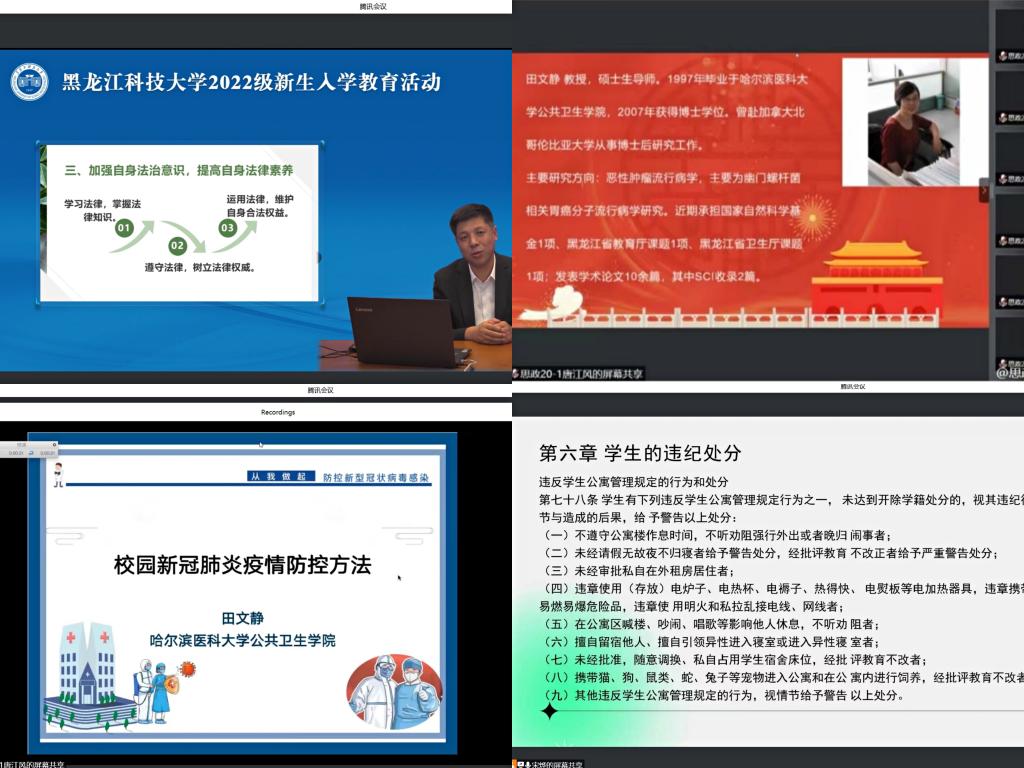 一是开展法制教育。组织观看《大学生法制教育》专题讲座、“同上一堂网络安全课”,增强2022级新生的法律意识和法制观念,关注网络信息安全,提高自我保护意识,做知法、懂法、守法的新时代青年。二是开展校规校纪教育。通过学习《幻影手机官方网站_幻影(中国)学生管理规定》,教育引导新生熟知学校各项管理制度以及相关政策法规,使新生自觉遵守校规校纪,提高文明自律意识,促进良好行为素养和文明行为习惯养成。三是开展疫情防控教育。组织观看《校园新冠肺炎疫情防控方法》专题讲座,帮助新生了解当前疫情形势与防控政策,培养学生防疫意识与大局观念,增强学生抗“疫”信心,筑牢校园疫情防控屏障。