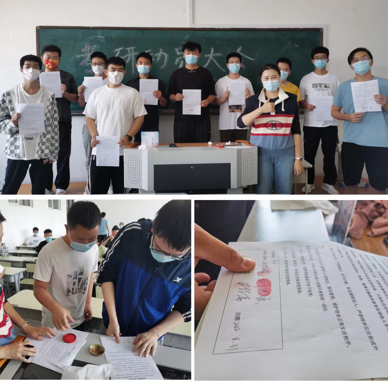 签订“承诺书”,宣誓一研为定。由年级辅导员吴思瑶组织召开考研动员大会。会上辅导员鼓励备考学生以饱满的精神状态投入到考研学习当中,希望同学们脚踏实地,心无旁骛,分秒必争。会后,考研学子纷纷签署考研承诺书,保证全力以赴,不负梦想,坚持到底。