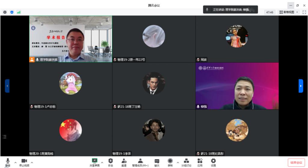 应理学院邀请,11月28日教育部长江学者特聘教授,清华大学精密仪器系主任柳强博士通过腾讯会议做了题为“先进激光技术与调控”的学术报告。柳强现为清华大学精密仪器系长聘教授,光子测控技术教育部重点实验室主任,清华大学先进激光技术团队负责人,“十四五”科技部重点专项“新型显示与战略性电子材料”专家组成员。柳教授主要从事激光技术、光场调控技术以及激光探测技术等方面的研究工作。在Nature Communications、Light: Science & Applications、Applied Physics Letters和Optics Letters等TOP期刊上发表SCI收录论文150余篇。目前担任中国微米纳米技术学会副理事长和中国光学学会理事,《中国激光》、《光子学报》等期刊编委。
