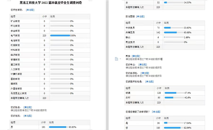 一是学院依托招就处对未就业学生进行问卷调查,了解和掌握每名毕业生求职意向、地域等信息,为就业指导和帮扶奠定基础。二是班主任通过召开班会等多种渠道,对未就业学生进行充分摸底,从未就业原因到真实打算,从就业意愿到目标行业一一进行分类并采用了网格化管理,做到心中有数,底数清晰,确保数据真实有效。三是指导教师、辅导员针对未就业学生单独建立就业帮扶台账,对于考研成绩不理想的学生、期望值较高的学生、慢就业的学生等进行“一对一”教育引导,帮助学生找准方向,树立目标,增强信心。四是学院积极整合各方力量,以教研室为单位专门成立了就业跟进小组,每个小组按照分片包干、专人负责的原则,通过“点对点”的形式对未就业学生进行专门跟进,“一人一策”制定针对性更强的帮扶措施,根据学生特点和能力,提供相应的就业信息和工作岗位。