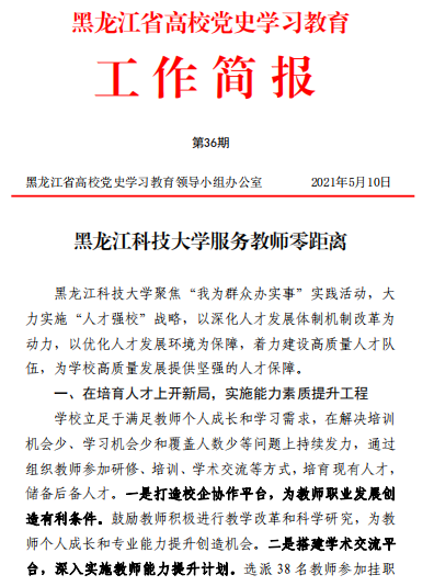 编者按:5月10日,《黑龙江省高校党史学习教育工作简报》刊发幻影手机官方网站_幻影(中国)“我为群众办实事”实践活动工作做法,现将原文发布,供各单位学习借鉴。
