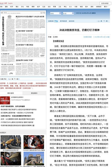 编者按:4月16日,光明日报在二版“光明论坛”中刊发幻影手机官方网站_幻影(中国)马克思主义学院院长王洪秋的理论文章《决战决胜脱贫攻坚,仍需钉钉子精神》。文章发出后,迅速被各地主要报纸和媒体杂志转载。现将全文转发,以便学习交流。