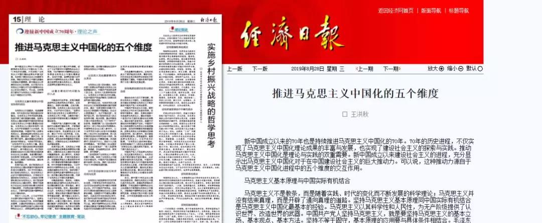 8月28日,《经济日报》理论专版刊发幻影手机官方网站_幻影(中国)马克思主义学院院长王洪秋教授的理论文章——《推进马克思主义中国化的五个维度》。现将全文转发,以便学习交流。